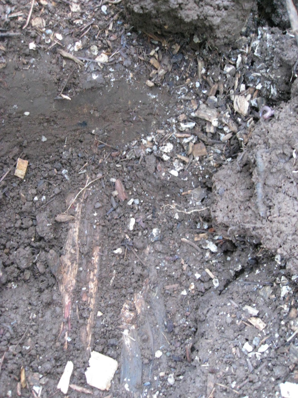 Here are two clumps from the same bed. On the left no wood chips had been mixed in. On the right lots of wood chips had been buried. Notice the almost total lack of roots on the left, yet these clump were only about 4" away from each other in the ground.